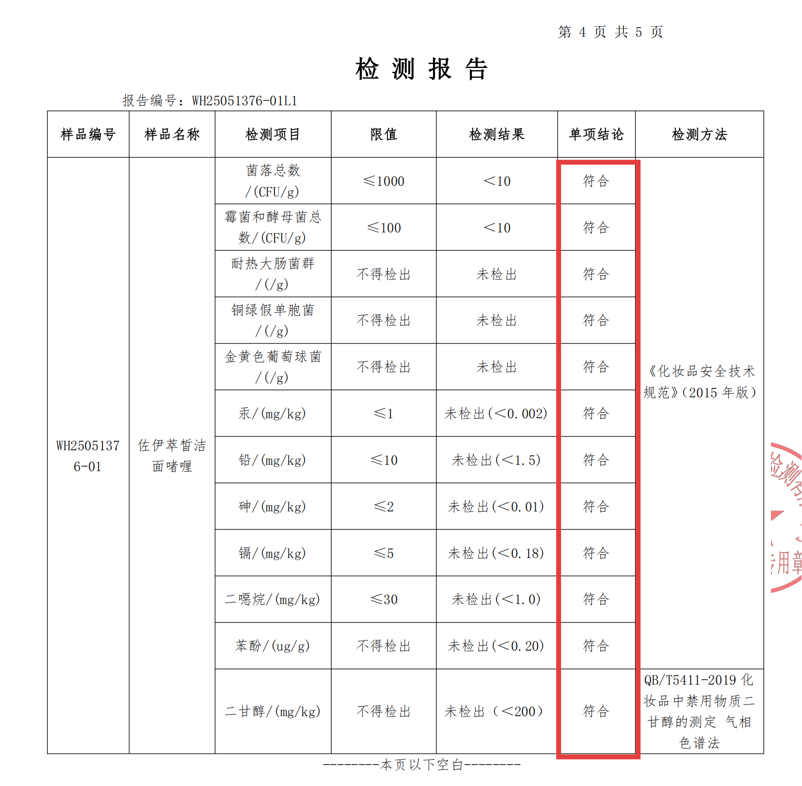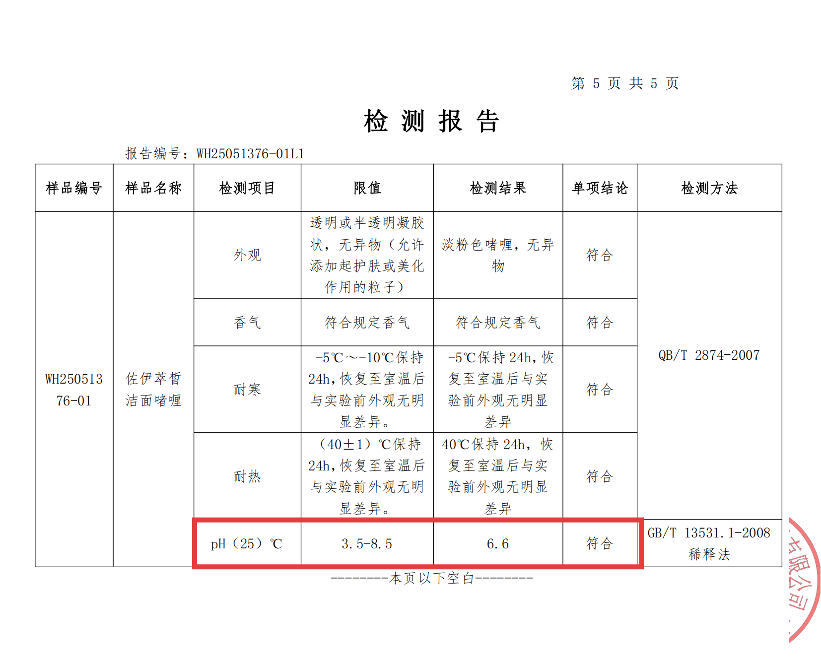 国家化妆品CMA检测认证:佐伊萃皙洁面啫喱已通过多项严格的理化指标与安全性检测。检测报告明确显示:符合国家化妆品安全技术规范要求;重金属、微生物等指标均远低于安全限值;pH值呈弱酸性,接近健康肌肤酸碱度,温和亲肤。