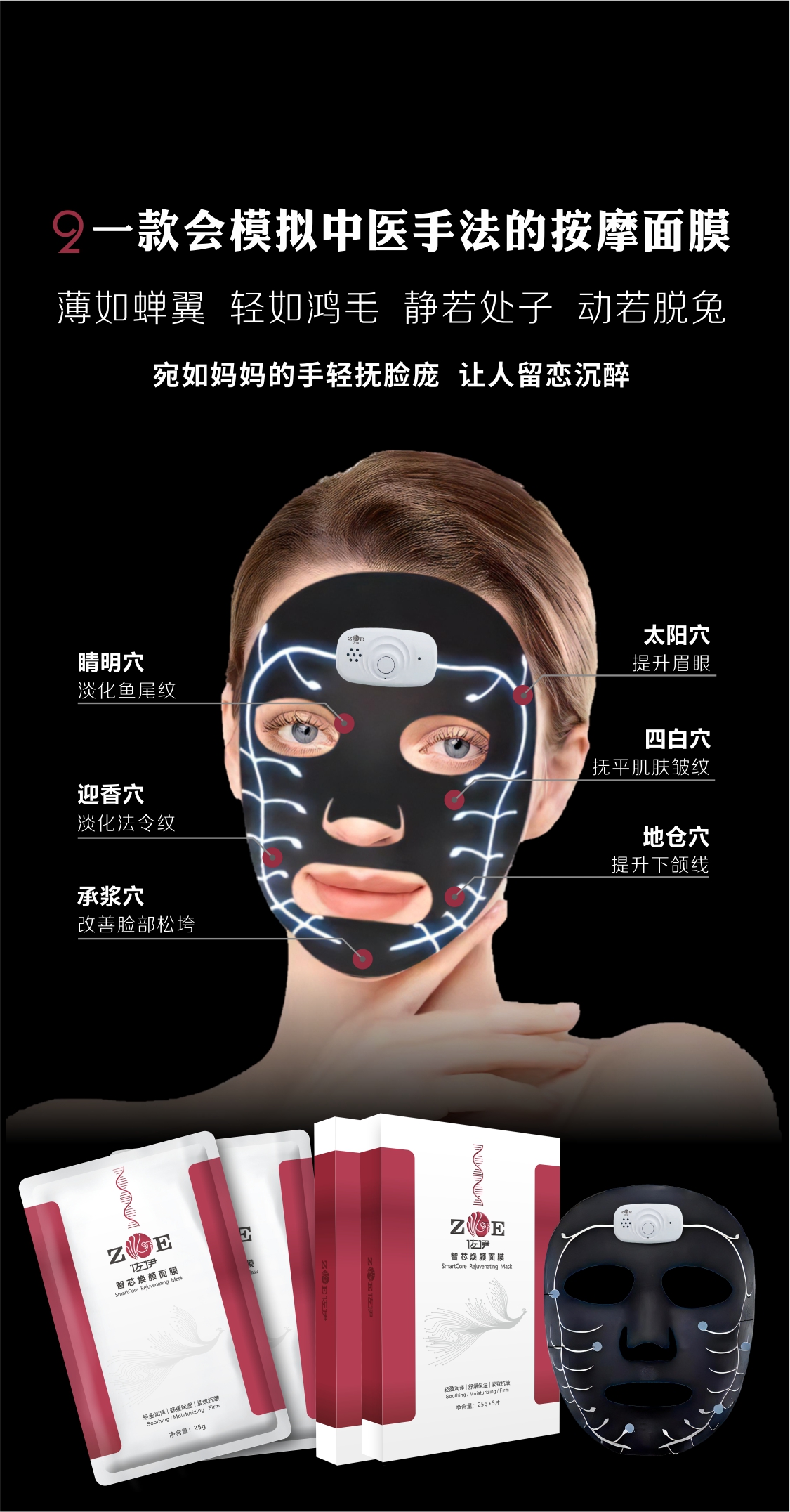 我们相信,真正的护肤是一场感官的愉悦。智芯面膜的触感,薄如蝉翼,轻若鸿毛,上脸近乎隐形。而一旦波动开启,它便“动若脱兔”,将模拟的中医按摩手法,化为无数个温柔而灵动的指尖,轻抚过你的每一寸脸庞,让人瞬间放松,沉醉其中。护肤,从此不再是一项任务,而是一段每日可期、属于自己的宁静愉悦时光。