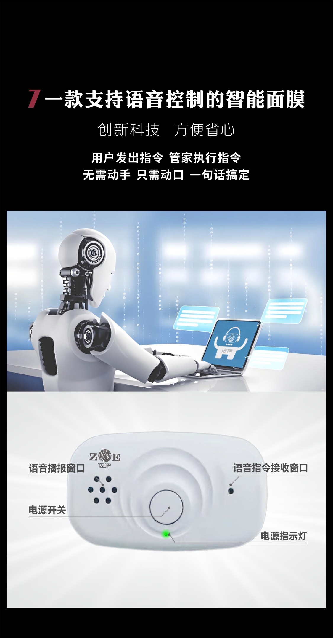 科技的真谛不应是复杂的炫技,而应是服务于人类,使生活更加便捷。佐伊面膜管家内置AI智能芯片,就像一位随时待命的私人护肤管家。无需手动操作,只需轻声一句语音指令,它便能精准执行。