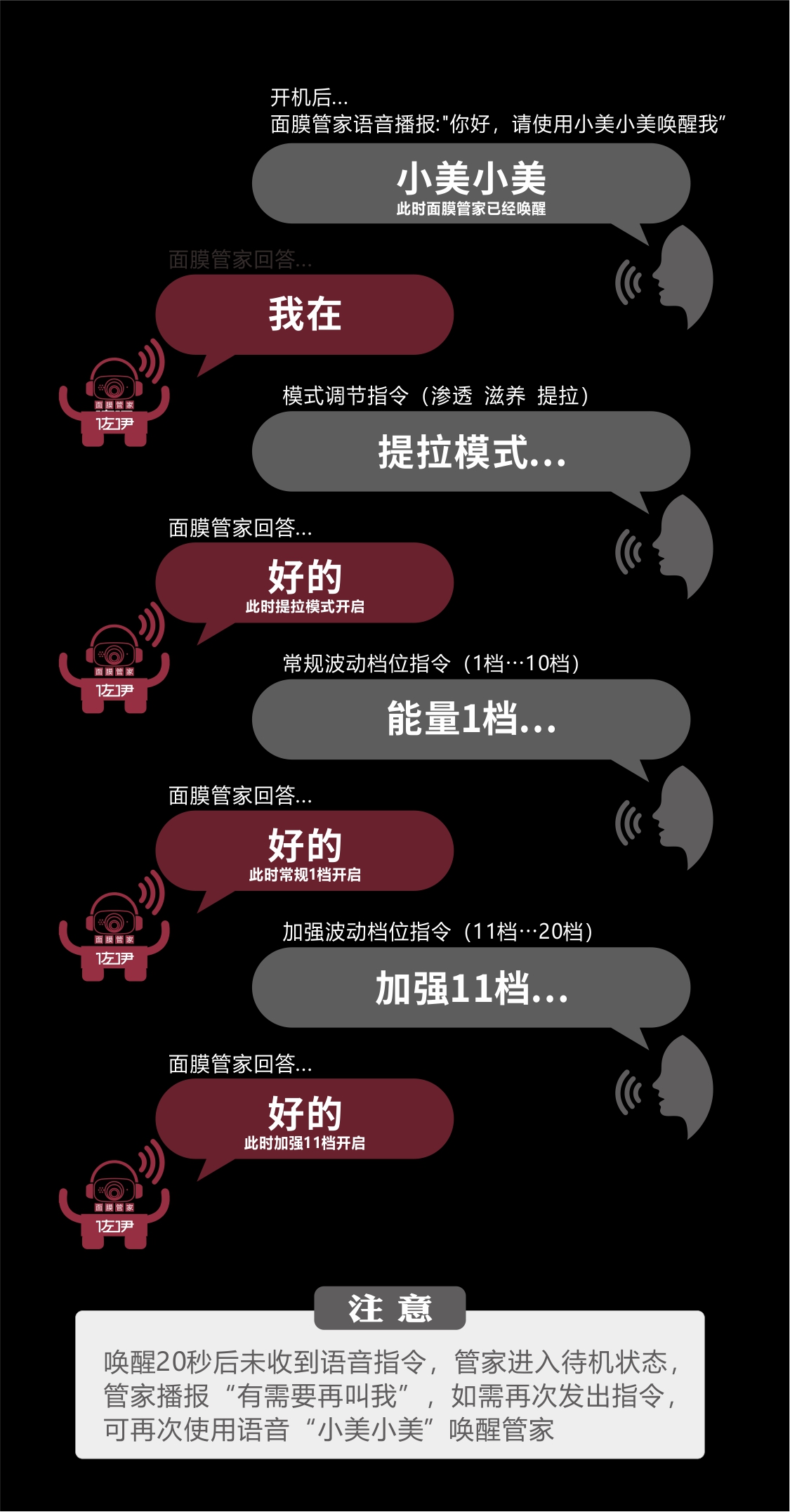 “小美小美,滋养模式”、“能量7档”、“加强13档”……实现真正的人机交互,无需动手,只需动口。 现代科技与传统护肤智慧的结合,让护肤变成一场愉悦的对话。
